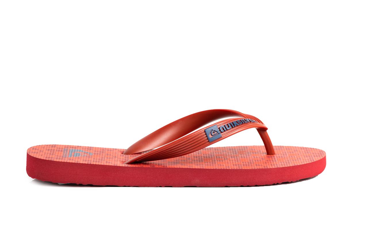 COMPOSICIÓN Y TECNOLOGÍA> Chanclas Quiksilver de dedo roja para niño con estampado de la marca.